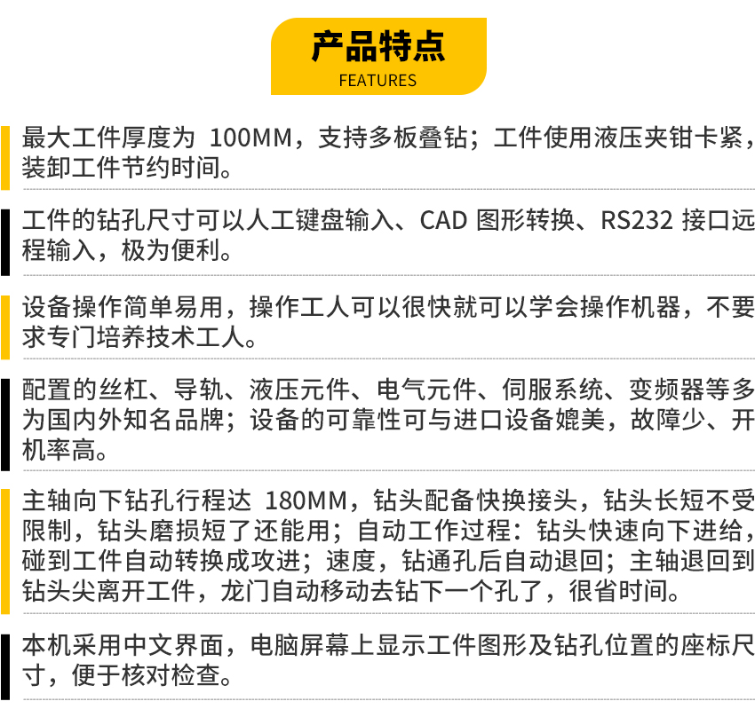 工劃線鉆孔鉆模鉆孔,應用本數控鉆床可使鉆孔工作的全過程達到高精度、高效率的完全自動化程度,為平板鉆孔加工首選設備。