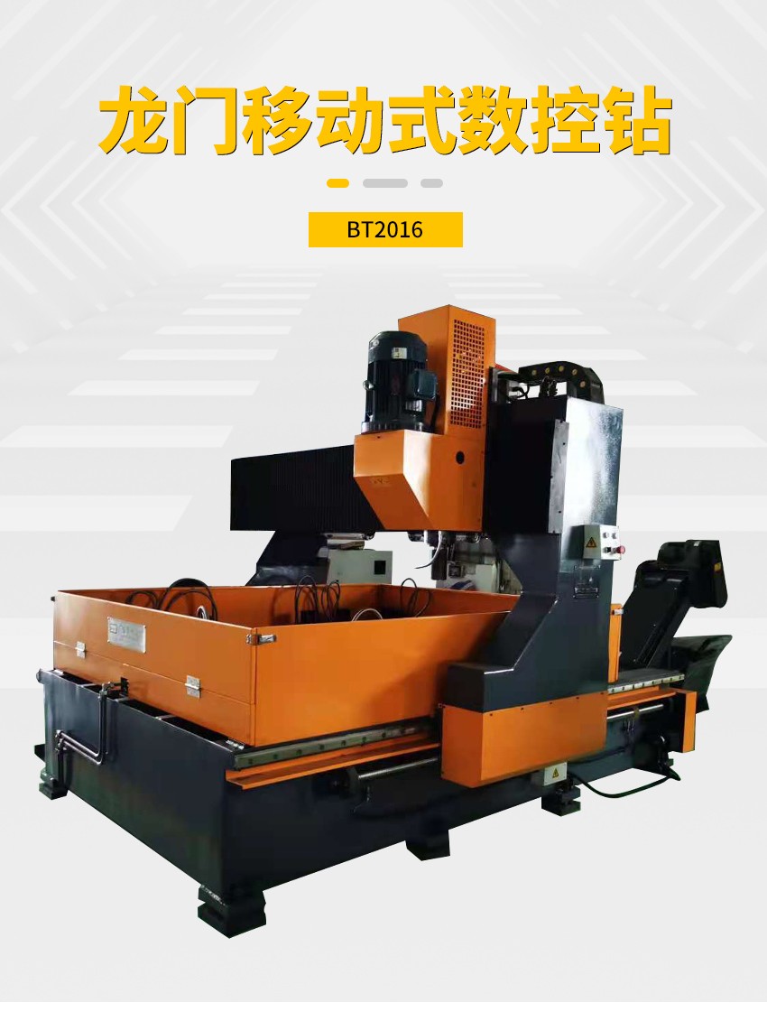 BT2016 型龍門移動式數(shù)控平面鉆床,用于在鋼板上鉆孔。加工的工件可以是鋼結構建筑、橋梁、鐵塔上的聯(lián)接板,也可以是大的法蘭盤、換熱器管板等。完全自動的加工。高效率、高精度。